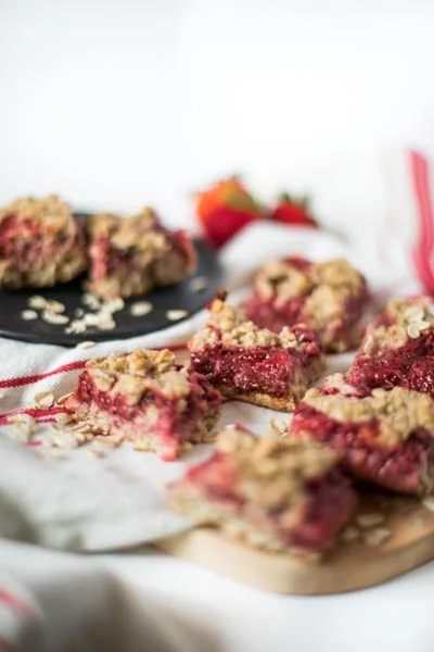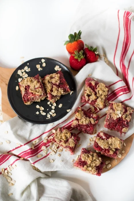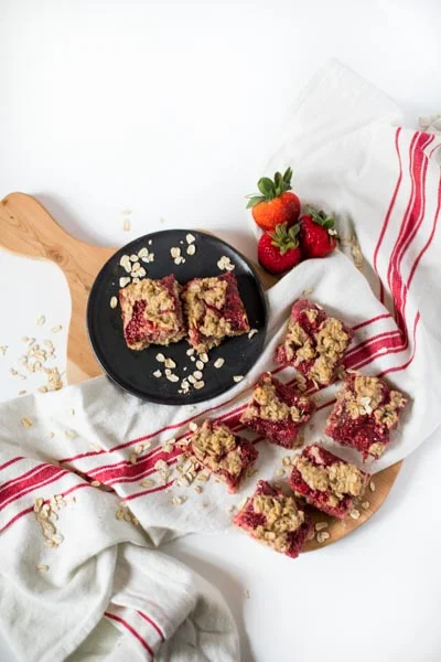I usually start searching knowing what I want to make, but wanting a template to know proportions. I was looking for a strawberry oat bar but was having a hard time finding any recipes that didnt have flour and extra sugar. I finally found THIS one for Strawberry Oat Bars with an easy Strawberry Chia Jam from Running With Spoons. I had to try it. I did some tweaking, I just can’t help myself! I knew there were some things I would want to add to it.